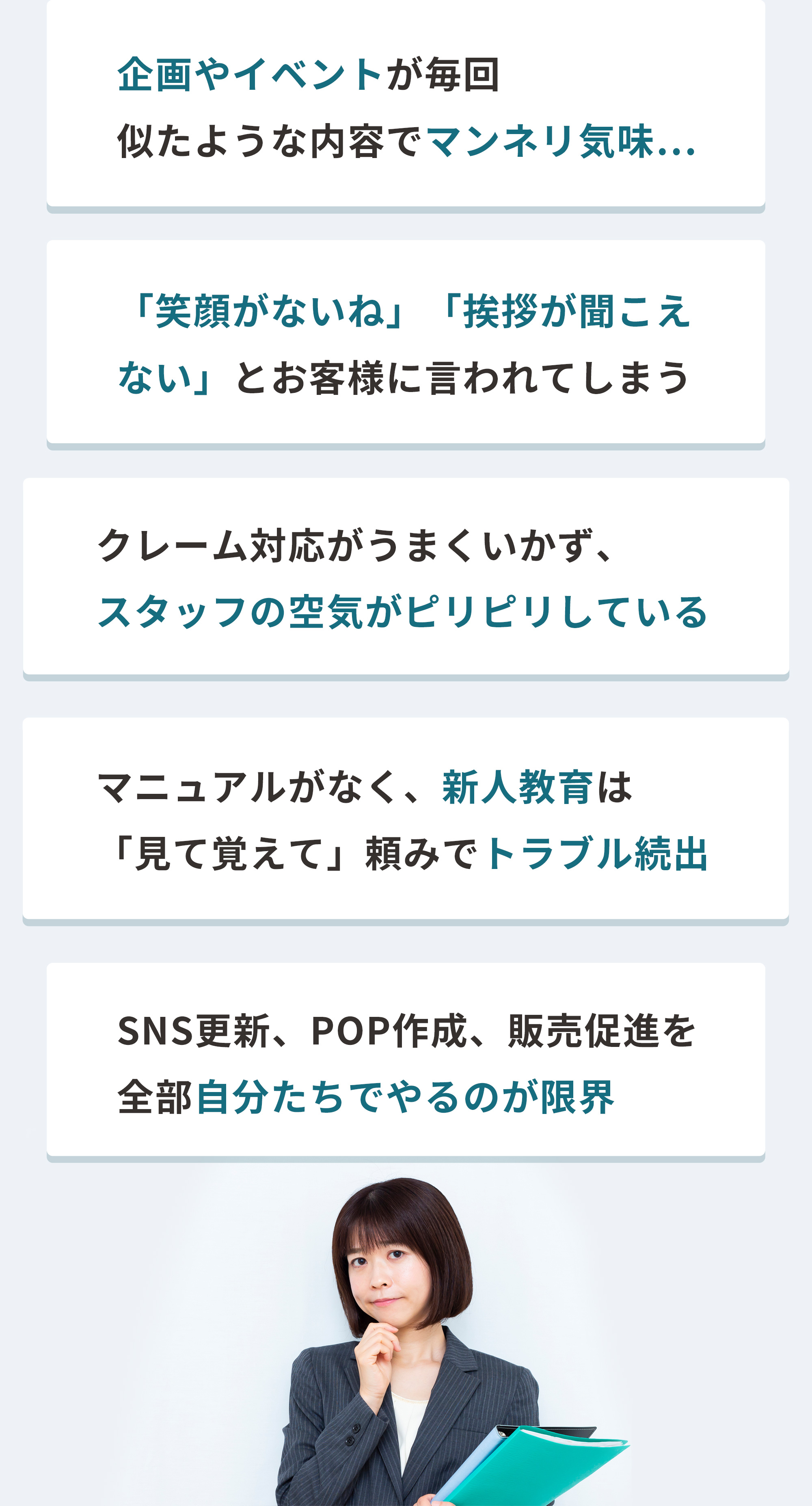 「あの人がいないと回らない」状況がなくなる - クレーム対応や接客マニュアルが整い、